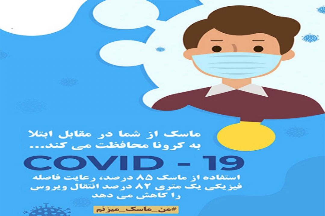 آغاز پویش همگانی «من ماسك میزنم» معاون كل وزارت بهداشت با تاكید بر استفاده از ماسك توسط همه مردم، از آغاز پویش همگانی با هشتگ (#من _ ماسك _ میزنم) در كشور خبر داد. ایرجحریرچی روز گذشته دریك نشست خبری با بیان اینكه رعایت فاصله فیزیكی در حد 85 درصد، استفاده از ماسك به میزان 80 درصد و پوشش محافظ چشم به میزان 78 درصد میزان انتقال ویروس را كاهش میدهد، از مردم خواست با هر دیدگاه و نظری، دراین زمینه همراهی و همكاری كنند. به گفته حریرچی استفاده از ماسك بهصورت معمولی 85 درصد احتمال انتقال ویروس را كم میكند.