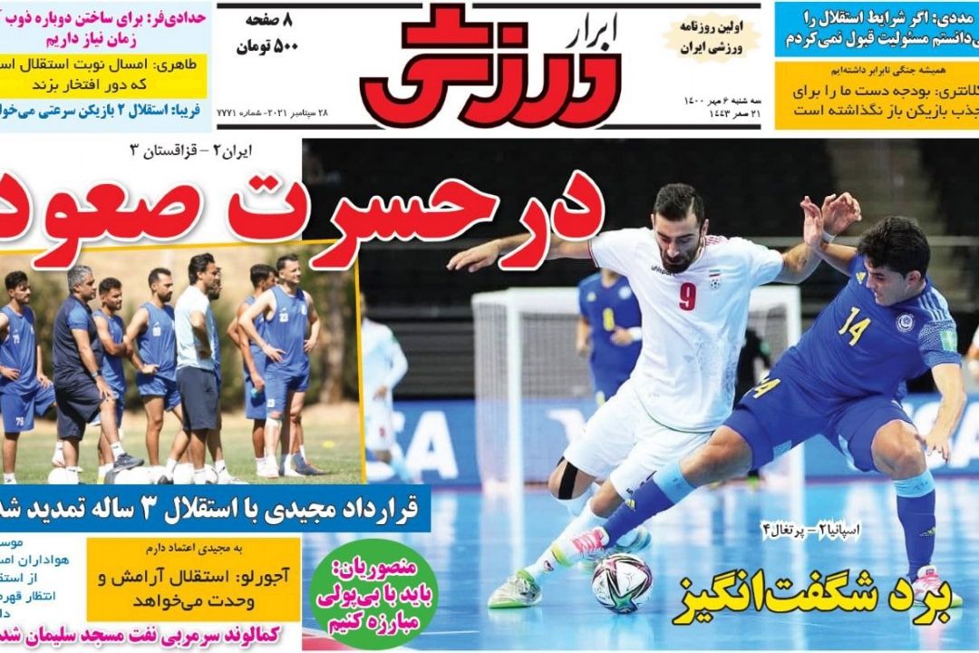 تصویر نیم صفحه روزنامههای ورزشی امروز به رشتههای مختلف ورزشی اختصاص یافته است.