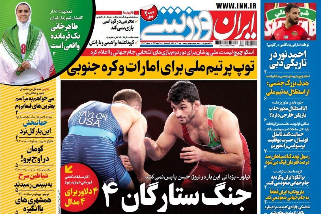 تصویر نیم صفحه روزنامههای ورزشی امروز به رشتههای مختلف ورزشی اختصاص یافته است.