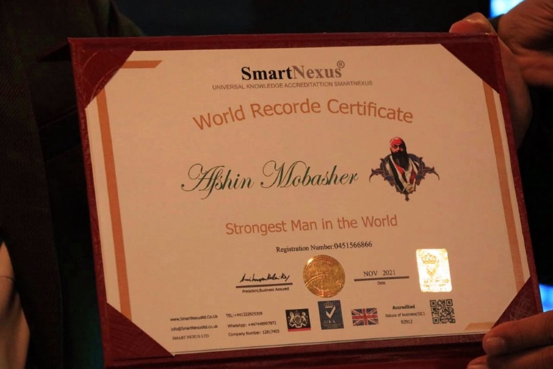 مراسم ثبت ركورد ملی سید افشین مباشر نرییس كل روابط بین الملل فدراسیون جهانی دفاع شخصی و سلاح های سرد و رییس موسسه جهانی بادیگاردی w.f.s.a.b امروز زیر نظر كمیته ملی ثبت ركورد كشور و فدراسیون ورزش های همگانی برگزار شد.