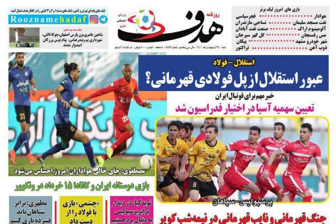 تصویر نیم صفحه روزنامههای ورزشی امروز به رشتههای مختلف ورزشی اختصاص یافته است.