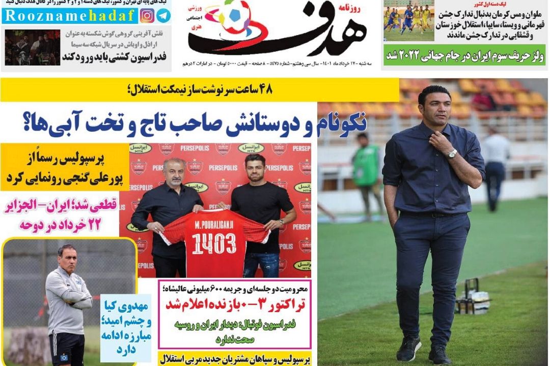 تصویر نیم صفحه روزنامههای ورزشی امروز به رشتههای مختلف ورزشی اختصاص یافته است.