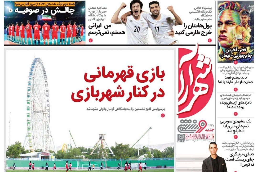 تصویر نیم صفحه روزنامههای ورزشی امروز به رشتههای مختلف ورزشی اختصاص یافته است.