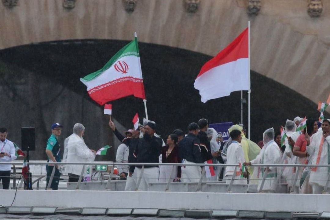 كاروان ورزشی جمهوری اسلامی ایران در افتتاحیه المپیك 2024 پاریس در رودخانه سن پرچم كشورمان را به اهتزاز درآورد.