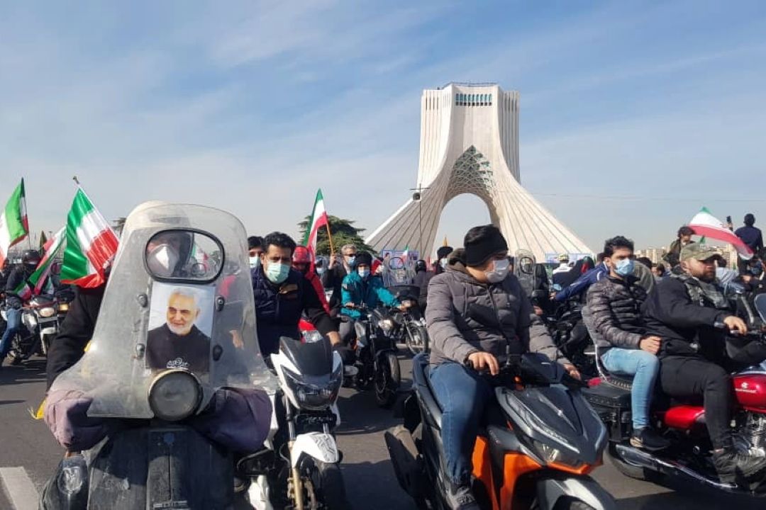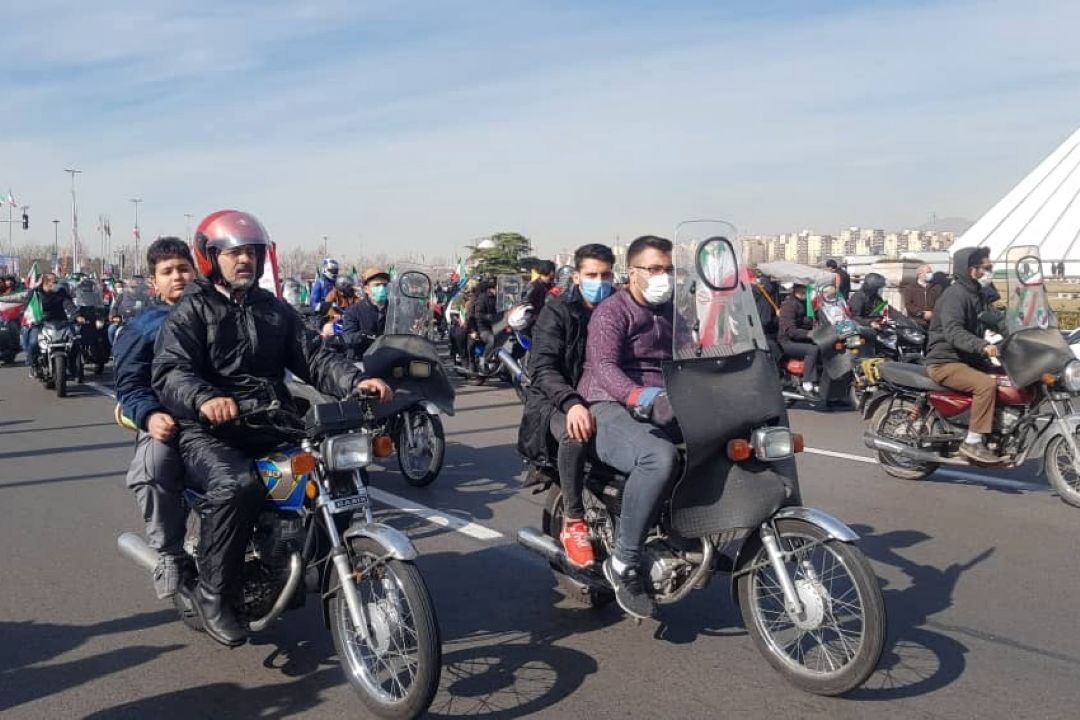 رژه موتوری رعایت شیوه نامه های بهداشتی 22بهمن 1399 گرامیداشت پیروزی شكوهمند انقلاب اسلامی ایران