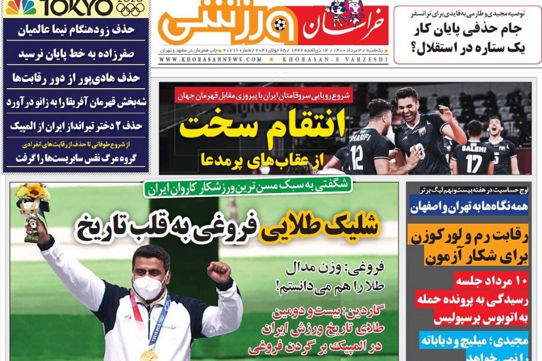 تصویر نیم صفحه روزنامههای ورزشی امروز به رشتههای مختلف ورزشی اختصاص یافته است.