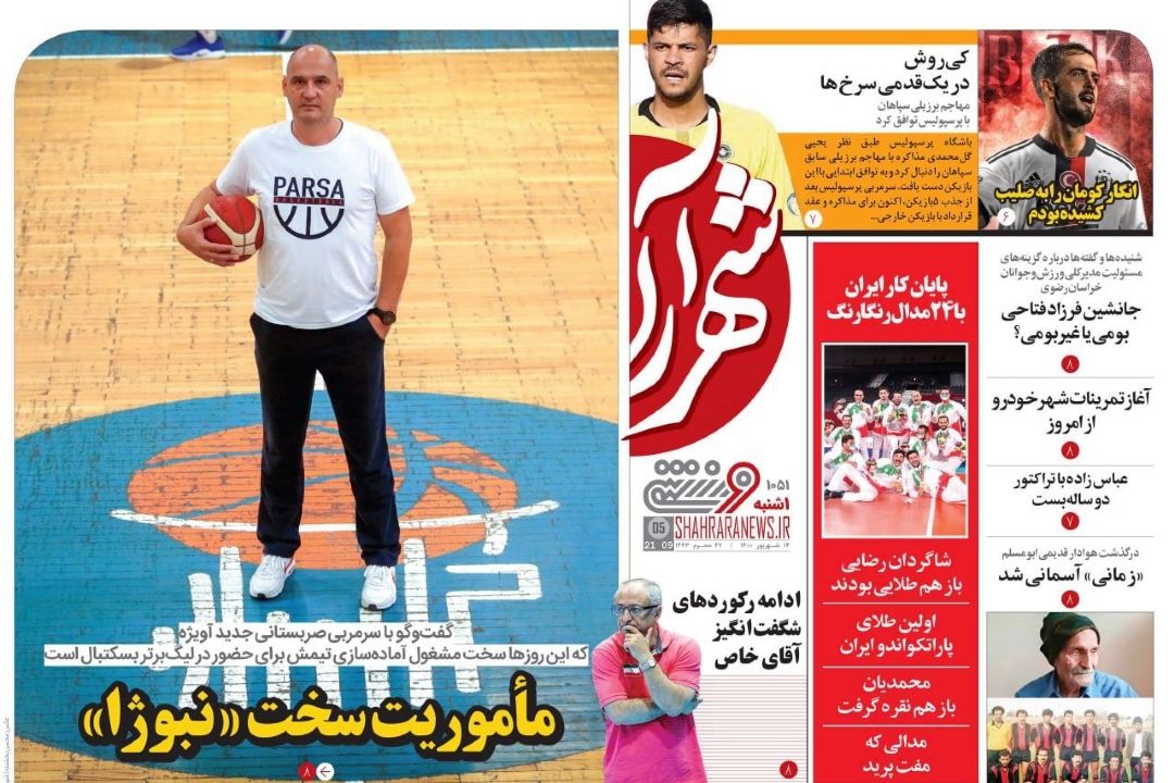 تصویر نیم صفحه روزنامههای ورزشی امروز به رشتههای مختلف ورزشی اختصاص یافته است.