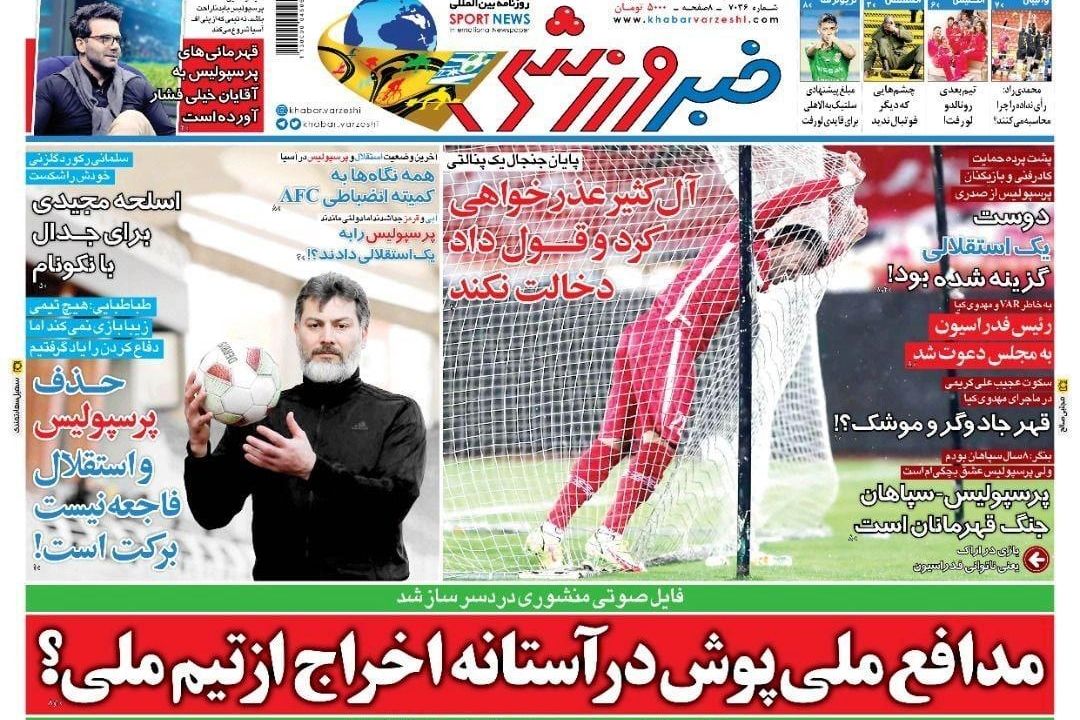 تصویر نیم صفحه روزنامه‌های ورزشی امروز به رشته‌های مختلف ورزشی اختصاص یافته است.