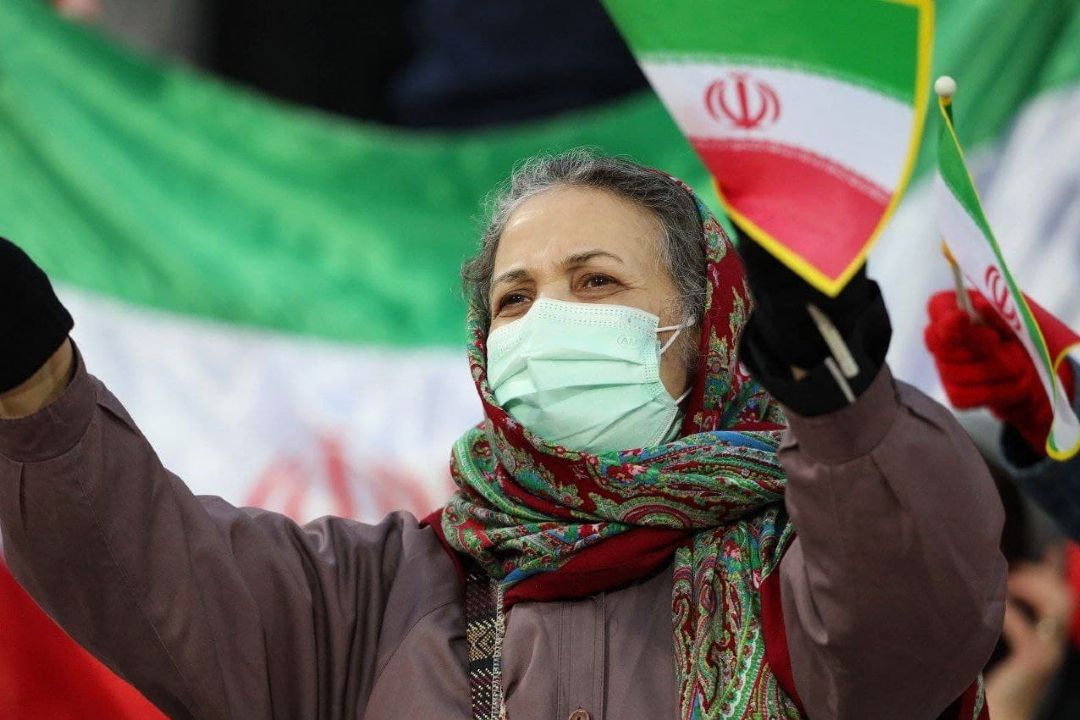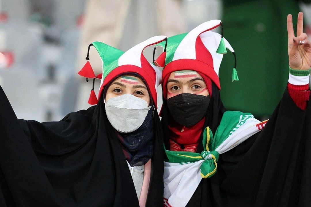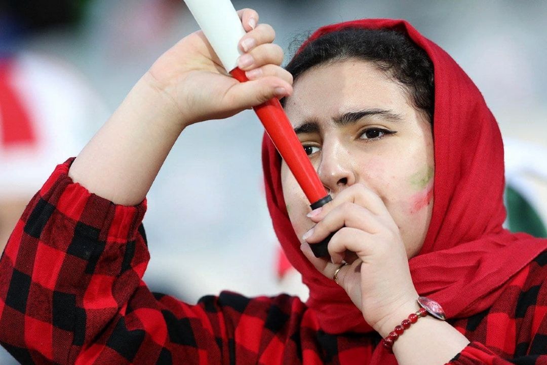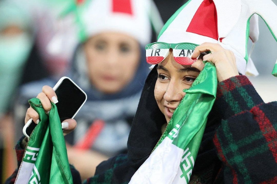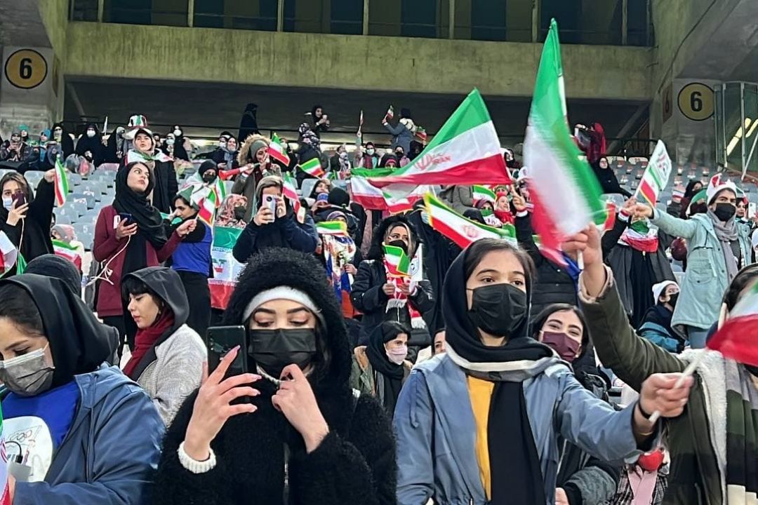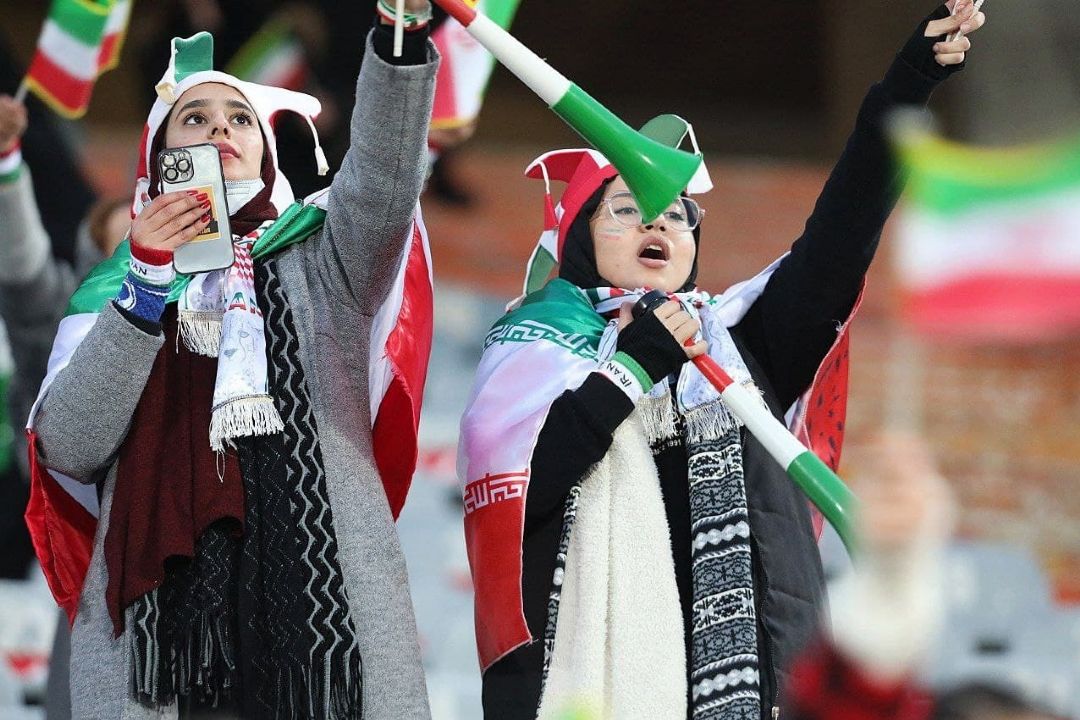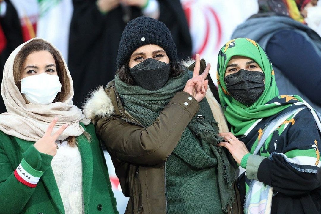 در دیدار تیمهای فوتبال ایران و عراق تعدادی از بانوان در ورزشگاه آزادی حضور دارند و این دیدار را از نزدیك تماشا میكنند.