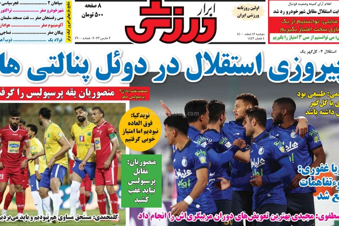 سر فصل روزنامه های 16 اسفند ماه 1400
