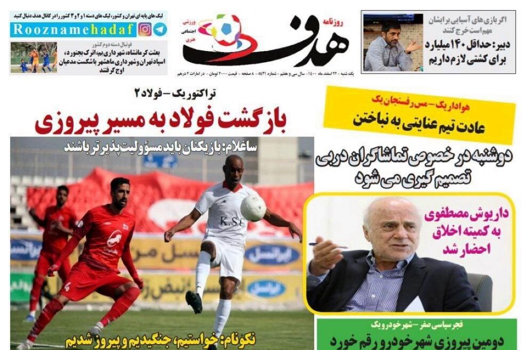 تصویر نیم صفحه روزنامههای ورزشی امروز به رشتههای مختلف ورزشی اختصاص یافته است.
