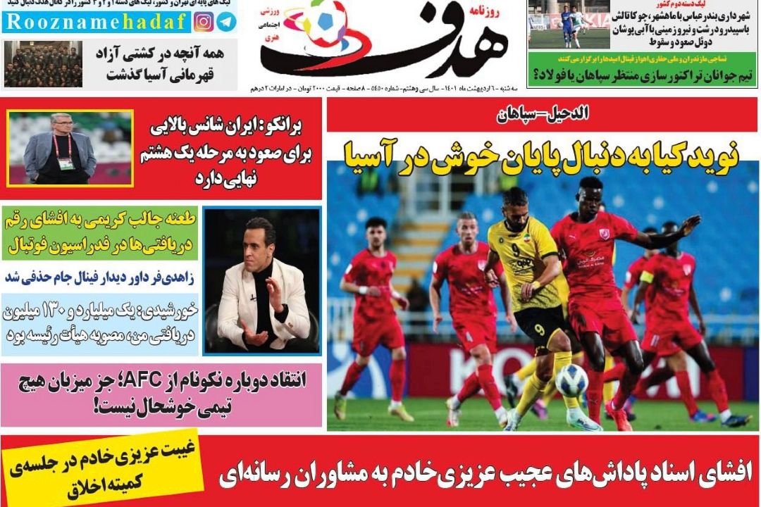 تصویر نیم صفحه روزنامههای ورزشی امروز به رشتههای مختلف ورزشی اختصاص یافته است.