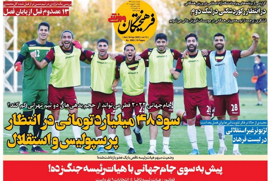 تصویر نیم صفحه روزنامه‌های ورزشی امروز به رشته‌های مختلف ورزشی اختصاص یافته است.