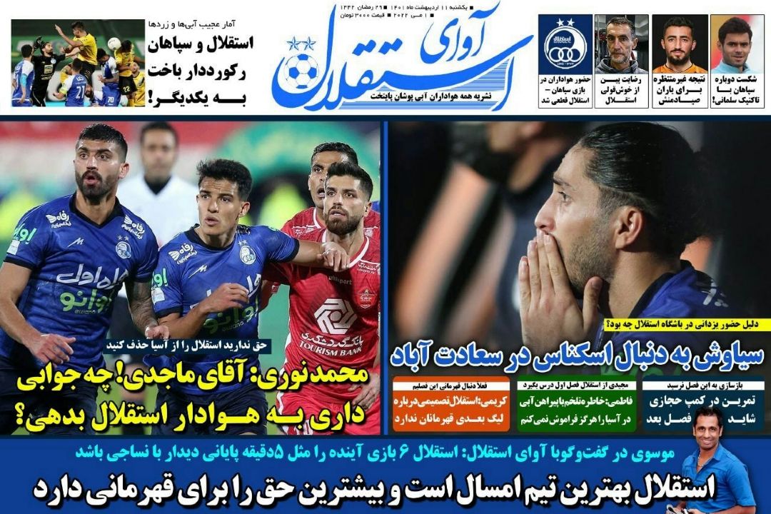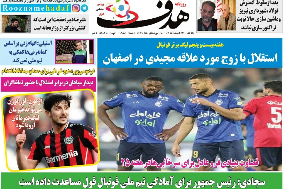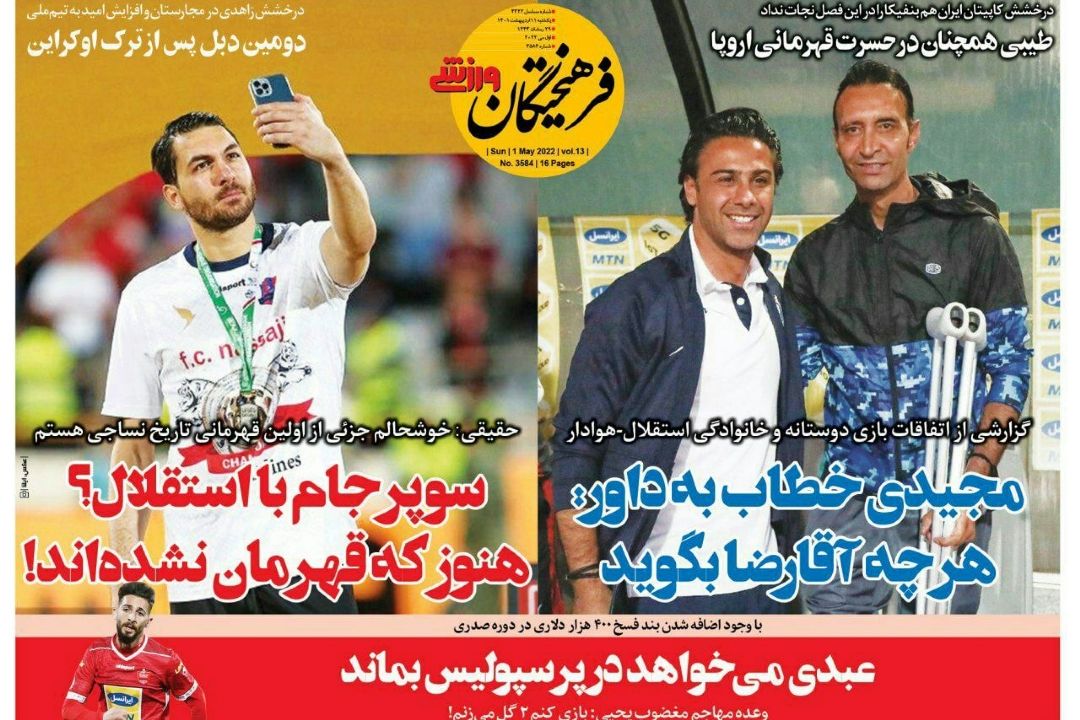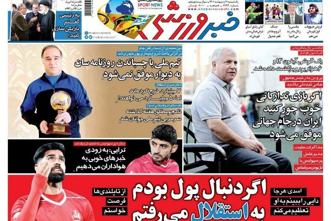 تصویر نیم صفحه روزنامه‌های ورزشی امروز به رشته‌های مختلف ورزشی اختصاص یافته است.