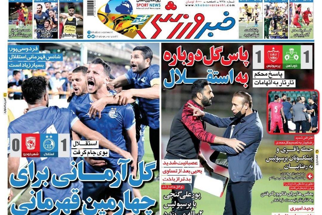 تصویر نیم صفحه روزنامه‌های ورزشی امروز به رشته‌های مختلف ورزشی اختصاص یافته است.