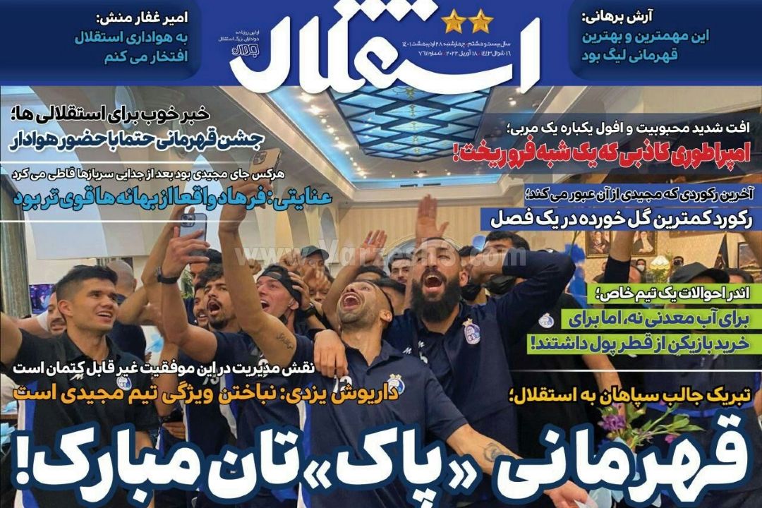 تصویر نیم صفحه روزنامههای ورزشی امروز به رشتههای مختلف ورزشی اختصاص یافته است.