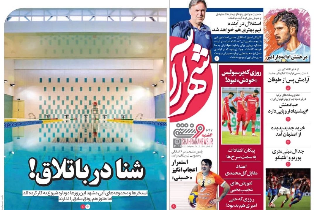 تصویر نیم صفحه روزنامههای ورزشی امروز به رشتههای مختلف ورزشی اختصاص یافته است.