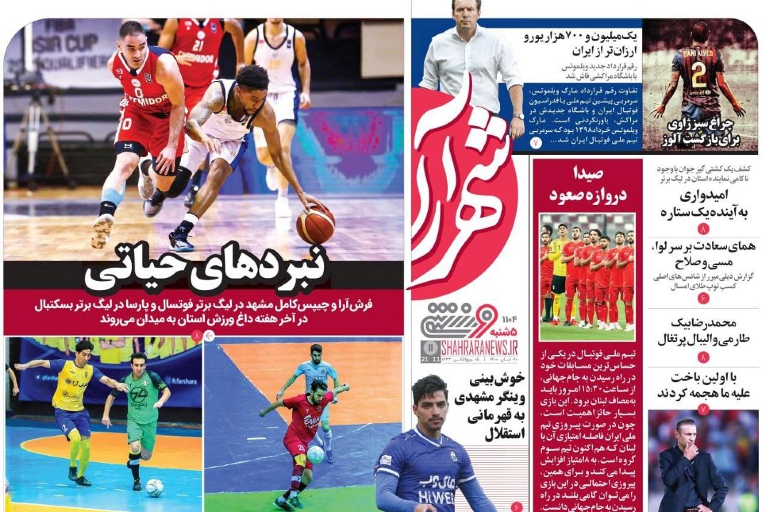 تصویر نیم صفحه روزنامههای ورزشی امروز به رشتههای مختلف ورزشی اختصاص یافته است.