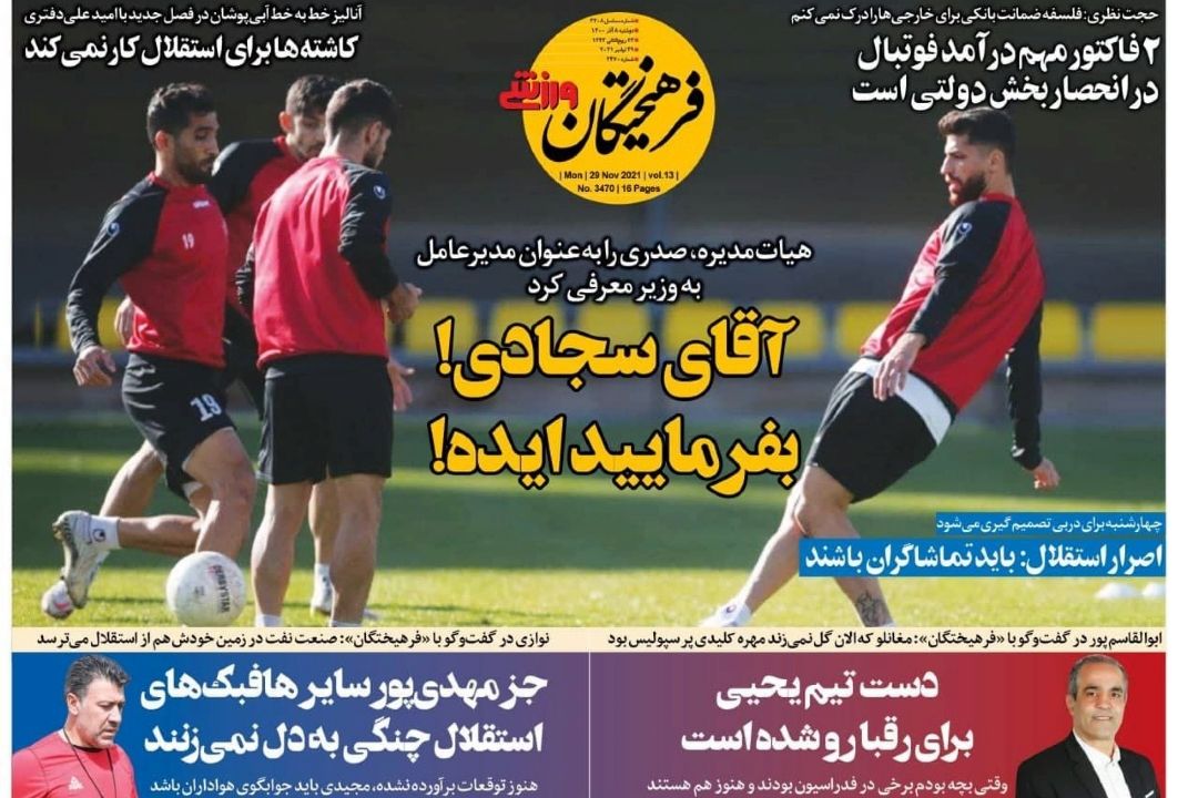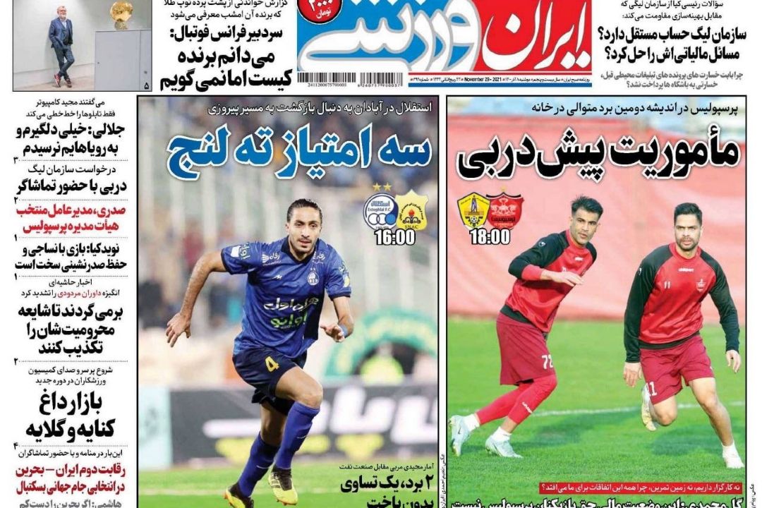 تصویر نیم صفحه روزنامههای ورزشی امروز به رشتههای مختلف ورزشی اختصاص یافته است.