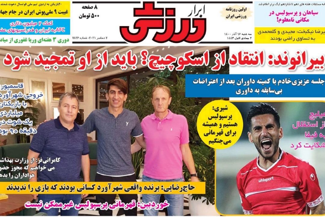 تصویر نیم صفحه روزنامههای ورزشی امروز به رشتههای مختلف ورزشی اختصاص یافته است.