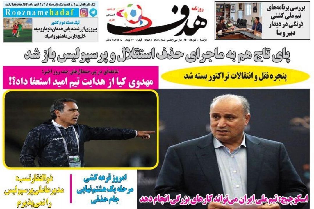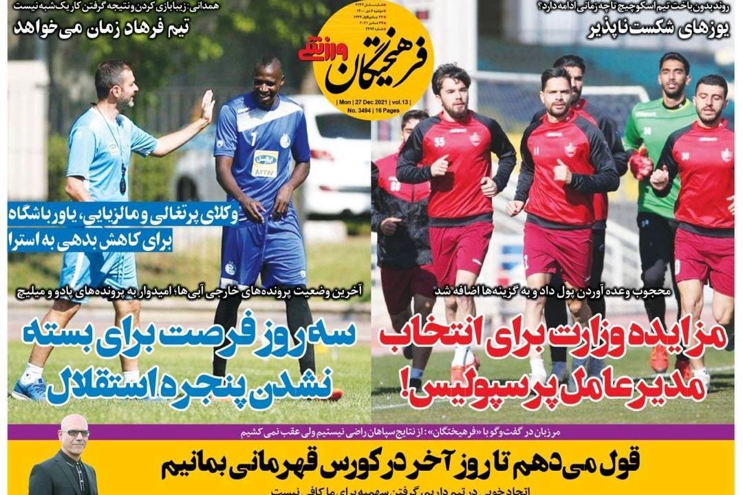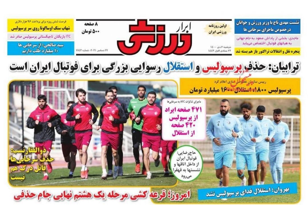 تصویر نیم صفحه روزنامه‌های ورزشی امروز به رشته‌های مختلف ورزشی اختصاص یافته است.